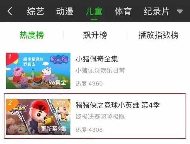 《猪猪侠之竞球小英雄4》播出一周,连续5天蝉联动画片收视冠军,同时在互联网上战绩斐然,腾讯总榜位列第11名、少儿榜第2名,爱奇艺连续6天热度榜第2名,优酷连续2天热搜榜占领第3名。