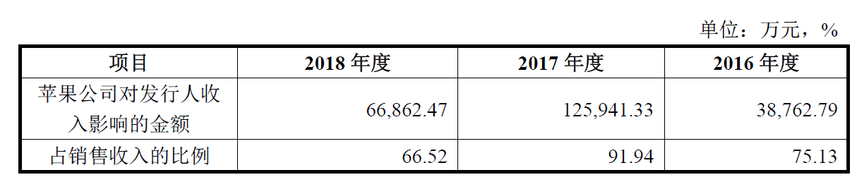 华兴创源的客户包括苹果、三星、京东方等,前五大客户贡献营收的比重超过60%。不过,从具体产品形态看,实际上公司的收入主要来自苹果产品。上述客户之一的三星,为苹果手机等提供OLED屏幕,因此,从产品形态的角度看,公司收入实际约67%来自苹果产品。因此,公司业务收入实际受到单一大客户苹果的重大影响。