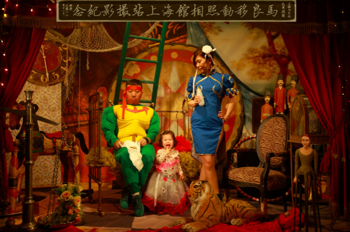 时光流转至21世纪的第二个十年,上世纪七八十年代拘谨的“谈恋爱”早已消失不见,被一种开放的,乃至带有公开炫耀意味的恋爱话语和实践取代,这一点在马良的作品《我的移动照相馆》(2012)中一览无余。情侣和夫妇在马良的镜头前尽情发挥想象力,装扮成自己理想中最有意思的样子,戏谑地与彼此互动。“我喜欢这组作品的原因是它诞生于一个全新的时代。人们更有个性,更时髦别致,不再顺从某一个好的唯一标准,女孩的形象也不再千篇一律。每个人都能够做自己。”史密斯说。