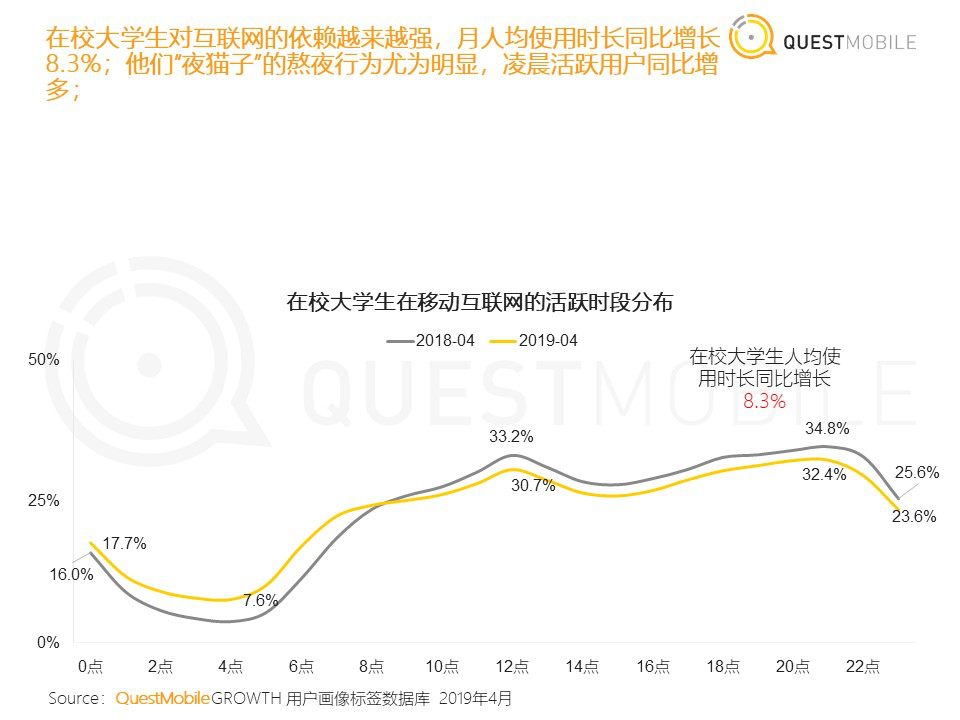据QuestMobile在6月初发布的《在校大学生洞察报告》中显示,2019年4月份,国内在校大学生的线上时间主要花在玩游戏、看视频和网购上;其中人均在手游里花费的时长高达1511分钟,同比增长16.2%;在游戏内容方面,大学生更加喜欢看游戏直播、玩“吃鸡”类和MOBA类游戏。