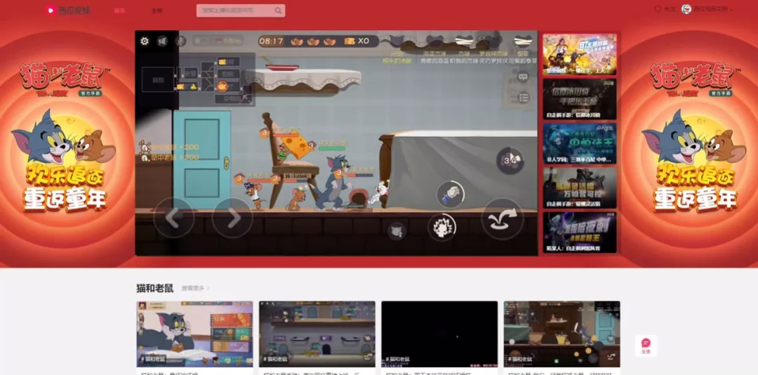 《猫和老鼠》在这方面就做的不错,首先是玩法上与动画有极强的继承性,在细节上也做到了创新,能够带来真正的游戏体验。而更重要的是,在运营上,作为在游戏领域有长期积淀的网易给予了足够的重视。其发起了与多个平台的活动和合作,比如在短视频平台西瓜视频上征集达人内容,在B站上发起创意大师的招募活动,同时也与虎牙、斗鱼这样的头部游戏直播平台合作进行主播招募与天梯比赛,这就让《猫和老鼠》真正成为了游戏,而不只是一个IP开发的空壳。