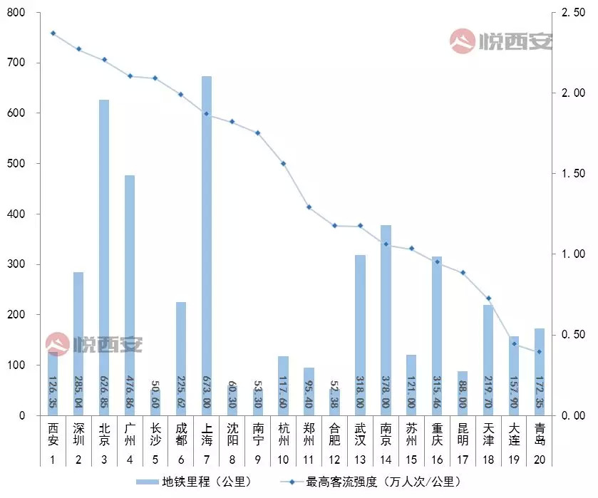 由于建设速度和人口规模不匹配,导致西安地铁的客流强度甚至赶超一线城市。