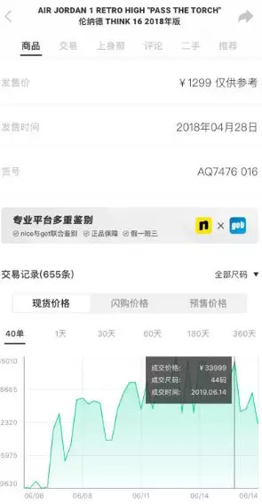 七千、八千、破万、两万,直到猛龙队拿下总冠军的6月13日,这双AJ 1 42.5码的球鞋售价接近30000元人民币,40.5码的球鞋标价39999人民币,距离40000元人民币大关同样仅有一步之遥。