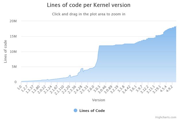 到2019年,Linux 最新内核发布,此内核有大约2500万行代码。