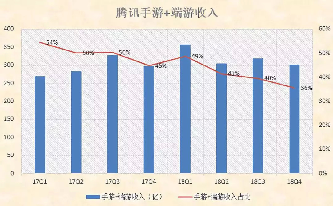过去,游戏以超过三成的比例,成为腾讯业务中最大的现金流来源。但这种局面正在发生变化,从历年游戏业务占总营收的比重看,这一比例正在逐渐降低。另一方面,根据腾讯2019年Q1财报,微信及WeChat的合并月活达到11.12亿,一个庞大的流量池亟待开发。