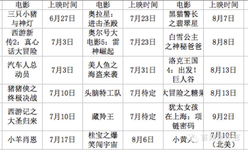 动画片挑这个时期上映无可厚非,可是数量太大势必造成观众选择困难,我们看表,《西游记新传2》和《汽车人总动员》、《猪猪侠之终极决战》和《西游记之大圣归来》、《奥拉星:进击圣殿》和《奥尔号大电影5》、《洛克王国4》和《大冒险之王国》甚至是同一天上映!