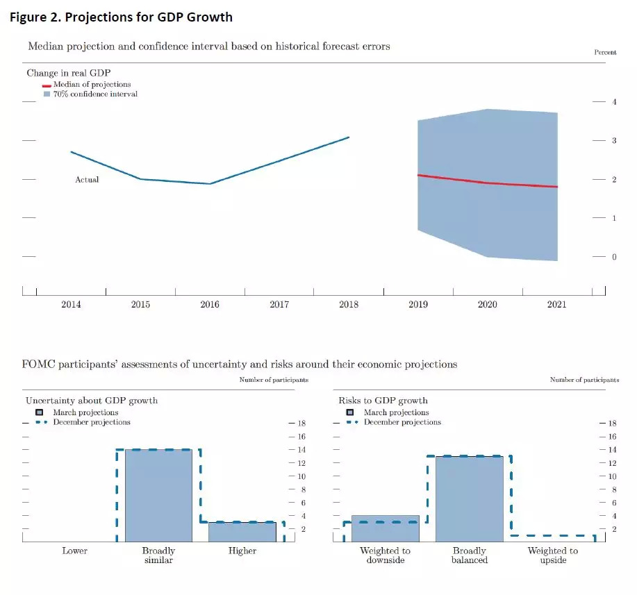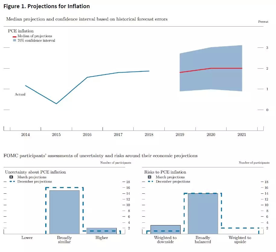 自1月份FOMC会议以来收到的信息显示,就业市场保持强劲,但经济活动增速较去年第四季的稳固有所放缓。2月的就业情况几乎没有变化,但近几个月的平均就业增长一直很稳固,失业率保持在低位。最近的指标显示,第一季家庭支出和企业固定投资增速放缓。同比而言,整体通胀下降,主要是由于能源价格下跌。剔除食品和能源项目的核心通胀率保持在2%附近。总的来说,基于市场的通胀补偿指标近几个月保持低位,基于调查的较长期通胀预期指标则变动不大。