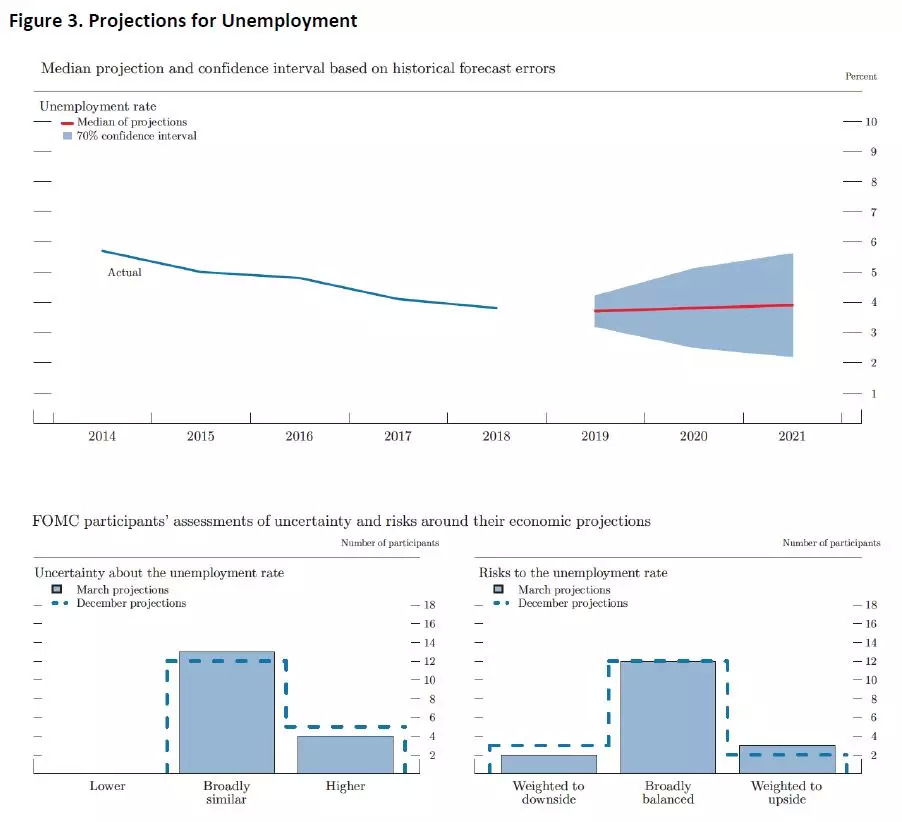 与我们关于长期目标和货币政策策略的声明相一致的是,未来几年最有可能出现的结果是经济活动持续扩张、劳动力市场状况强劲,以及通胀率接近美联储2%的对称目标。尽管存在相当大的不确定性,但我们大多数FOMC成员预计,2019年、2020年和2021年,通胀率将保持在目标附近,增速将放缓至接近2%,失业率将略低于4%,政策利率可能保持稳定。