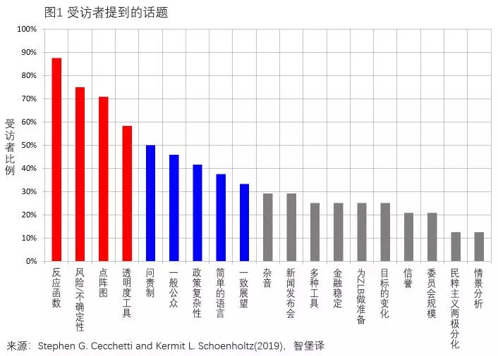 中央银行对预期和未预期的事态发展作出反应的系统方式构成了货币政策的反应函数。与货币政策的现代文献相一致,解释这个反应函数是调查中被引用的话题列表的首位(参见图1)。