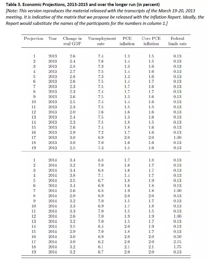 我们根据2019年4月20日公布的FOMC3月19日至20日会议的纪要和SEP中的信息,构建了一份简明的通胀报告。在数据附录中,我们包括了2013年3月19日至20日的预测矩阵,以代表我们建议FOMC在每季度的SEP会议之后立即发布的数据。我们注意到,当与上一季度发布的矩阵相结合时,这些信息允许任何人在完整的SEP中复制与会议记录一起出现的所有图表。