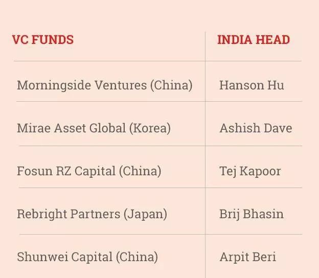 此外,日本风险基金Rebright Partners,聘请了Bhasin Singh担任其印度业务主管;韩国基金Mirae Venture最近雇佣了Ashish Dave;中国的顺为资本也有了Arpit Beri加入。