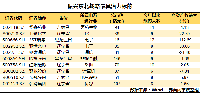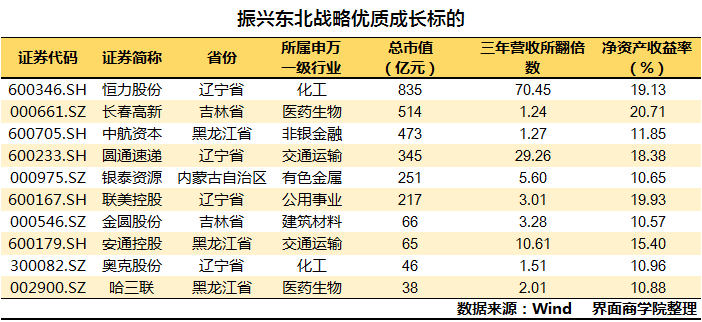 东北经济区域振兴政策将进入落地阶段,资本市场将对此予以积极解读。界面商学院对3624家A股上市公司中注册地在辽宁、吉林、黑龙江三省以及内蒙古自治区的东部五盟市的160家上市公司进行整理分析,分别制作了优质成长标的、优先受益标的以及最具潜力标的三个榜单。