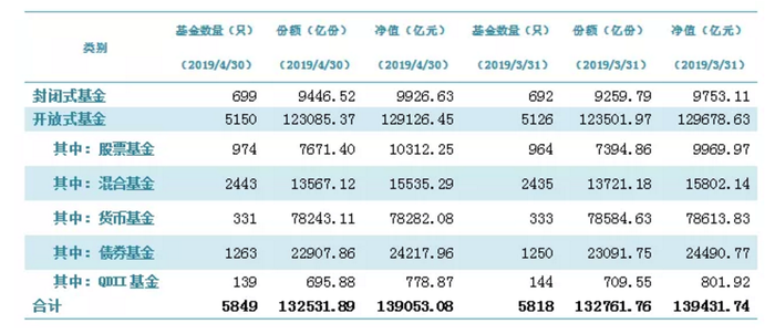 6月17日,中国基金业协会发布2019年4月的公募基金市场数据。