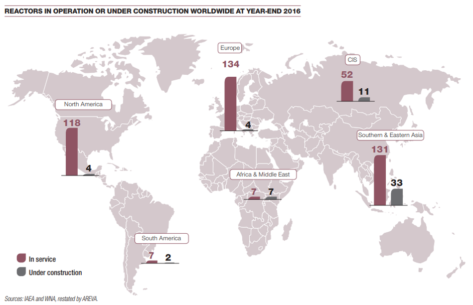 欧安诺预计,到2020年三分之一的营收将来自东亚地区。该公司新投产的特丽卡斯坦工厂发言人Nathalie Bonnefoy曾对法国《南方日报》表示,“公司业务不断增长的希望在于中国,那里有着全球近一半的在建核电机组。”