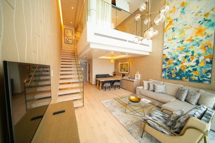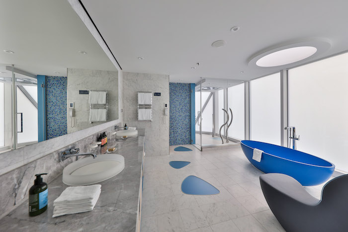 261平方米的复式套房、三间独立卧室、11个人住起来丝毫没压力、270度看海的超大浴室、私人按摩浴缸……