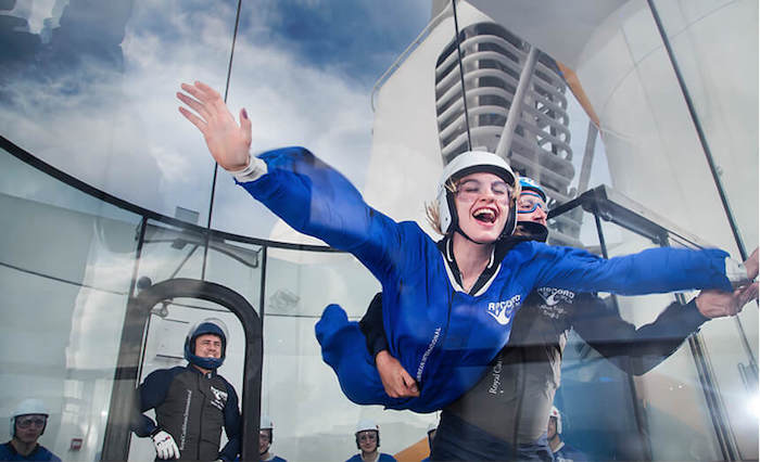 甲板跳伞和甲板冲浪也属于皇家加勒比游轮上的常见特色项目了,光谱号上当然也要体验一番。长12米的模拟冲浪,也会让人们体验到真正在海滩上冲浪的感觉。