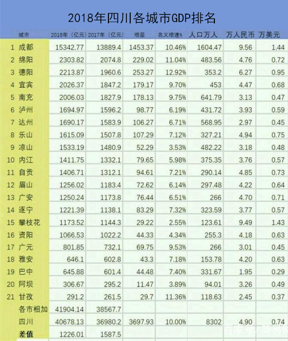 四川省统计数据显示,2018年四川省实现生产总值4.06万亿元,GDP总量首次突破4万亿元,名义增速为10%,同比上年增长了3697亿元。其中,川南经济区表现亮眼,宜宾GDP总量突破2000亿,成为四川新晋两千亿俱乐部市州成员。