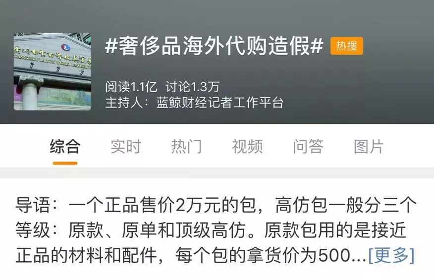 近日,一则#奢侈品海外代购造假#的微博话题引发关注,阅读量超1.1亿。