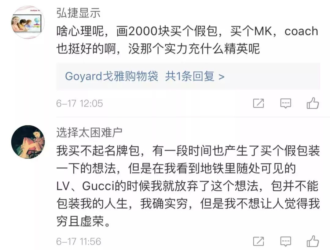 还有网友对买奢侈品的人表示不理解。