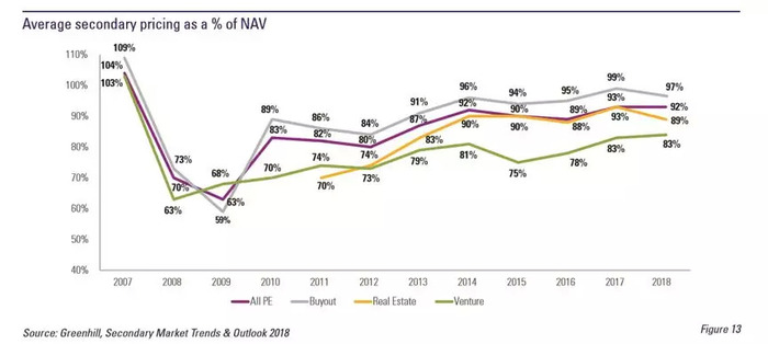 2007-2018年PE二级市场平均交易价格(Price / NAV, %)