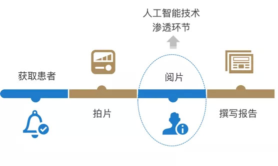 而基层影像医生缺乏的现状短期内难以改变,以AI医学影像产品为代表的诊断服务能够很好地补位。AI在医学影像业务流中的渗透,主要体现在日常运营中的诊断环节。