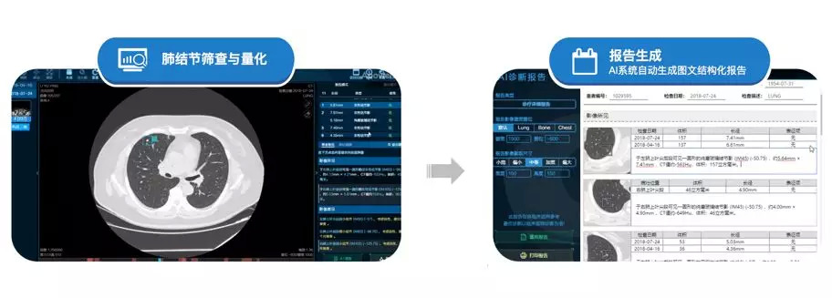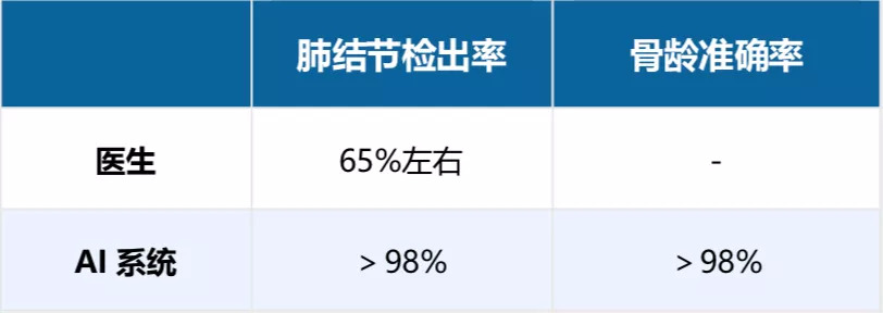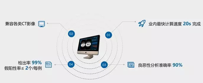 浙江省庆元县中医院于2019年4月引进深睿医疗AI人工智能影像读片系统,系统以每分钟15个病例(数百张读片)的速度进行筛查,并将疑似病灶标记出来,作为辅助诊断结果,提供给放射医生进行诊断,AI读片对于肺癌的检出率>98%,骨龄准确率>98%,其他一些疾病检出率>95%。而过去,筛查肺部结节全靠医生的经验,在CT 扫描图像上一寸一寸观察,不仅工作量浩大,而且准确率只有65% 左右。