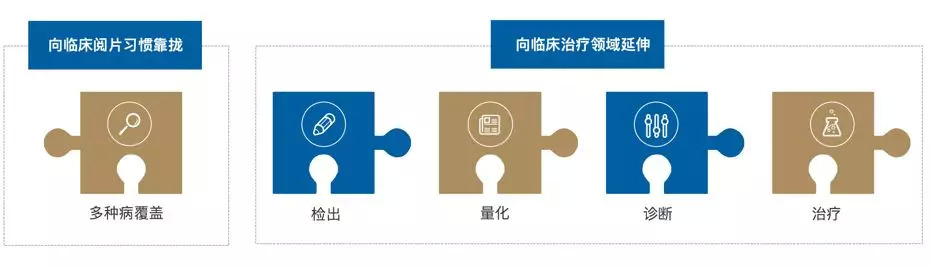 诊断环节的AI技术渗透是本报告研究的重点内容之一。近年来,以深度学习算法为主的计算机视觉技术开始在阅片过程中迅速渗透,未来,阅片方式将从原来的完全由影像科医生主导,逐渐过渡到由医生和AI协作的状态。