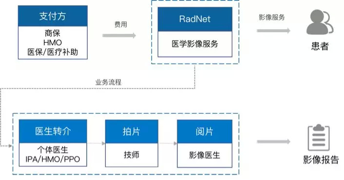同时商保对于合作医疗机构的影响力较强,通过转诊安排保证了RadNet的客源。RadNet患者主要来源于合作HMO以及医疗机构、医生的转介。为满足HMO类组织的控费要求,RadNet的专有部门UM,依据医疗必需性和适当性标准,对转介医生进行培训和行为管理,并对其开具的影像检查项目进行审核。