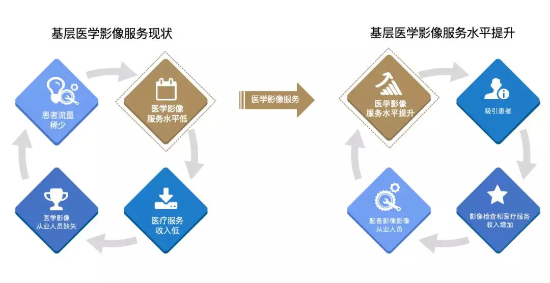对于基层来说,唯有通过市场化的力量(比如科室运营服务)提升医学影像诊断水平,通过AI医学影像弥补诊断医生数量和水平的不足,进而留住患者,增加影像检查收入和医疗服务收入,才能构建正向循环,从而使基层医疗整体水平和收入得以提升。