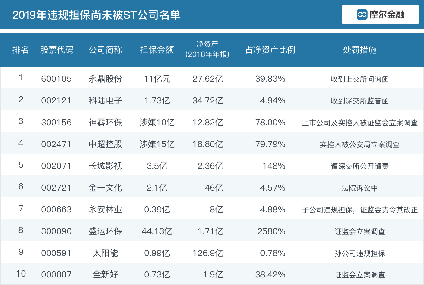 证监会要求“上市公司对外担保总额不得超过最近一个会计年度合并会计报表净资产的50%”,因此下面图里面担保额度超过这一警戒线的大家要格外注意其公司和股价风险。