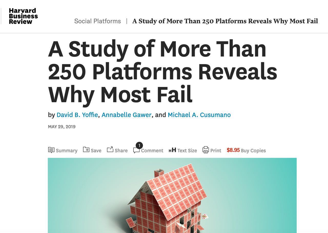 哈佛商业评论在《平台正在以惊人的速度失败,怎么办?》一文中提到这样一个观点:
