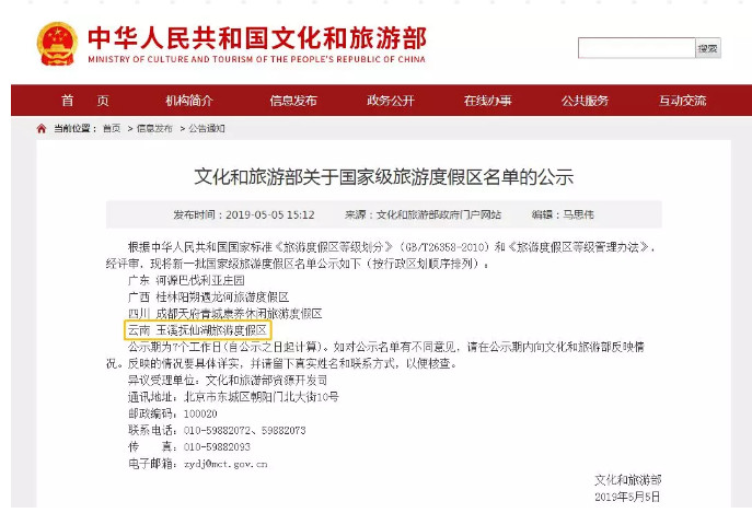 5月5日,文化和旅游部网站发布了《关于国家级旅游度假区名单的公示》。上榜的一共有4个省份,分别是广东河源巴伐利亚庄园、广西桂林阳朔遇龙河旅游度假区、四川成都天府青城康养休闲旅游度假区、云南抚仙湖旅游度假区。