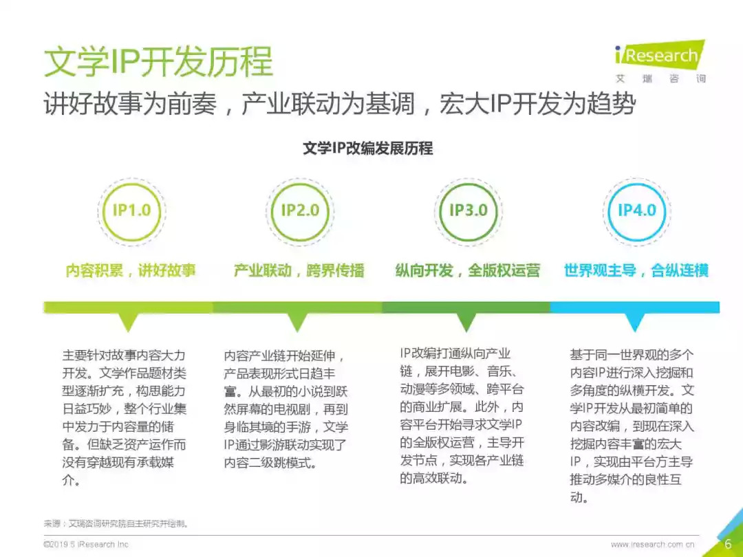 以艾瑞咨询《中国文学IP泛娱乐开发报告》中的发展历程分类来打比方,南派三叔、天下霸唱显然是在1.0、2.0时代匆匆出手的,《三体》更是还没有完成从文字到影像的基本跨越。统一世界观、平台主导多媒体互动的4.0,显然更需要版权的集中统筹,在有足够实力的运营者手中发挥出更大能量。
