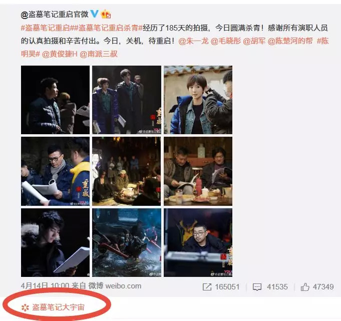 如南派三叔在《盗墓笔记》回归之后,进行重启统筹运营或许就是一个主要的方向了。值得注意的是在《盗墓笔记重启》官微中,已经打上了“盗墓笔记大宇宙”的标记。