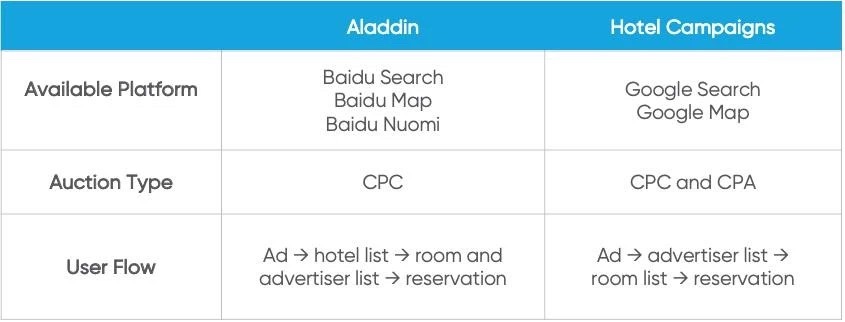 大多数旅游元搜索引擎会通过酒店搜索触发广告展示,而阿拉丁则开发了不同的用户流量。只有当用户点击具体的酒店或房型进行搜索时,阿拉丁才会展示相应的广告选项。
