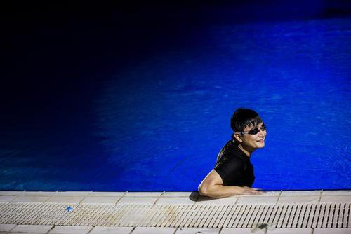 他在泳池内自由前进,通过水中的摄影,可以隐约的看到一点点露出的赘肉,作为一个中年男人,这样的身材已是不错的。傅盛游到泳池的台阶边,湿透的衣服很重,将他拖拽在水中,他用手支撑着,站了起来,上到岸边。