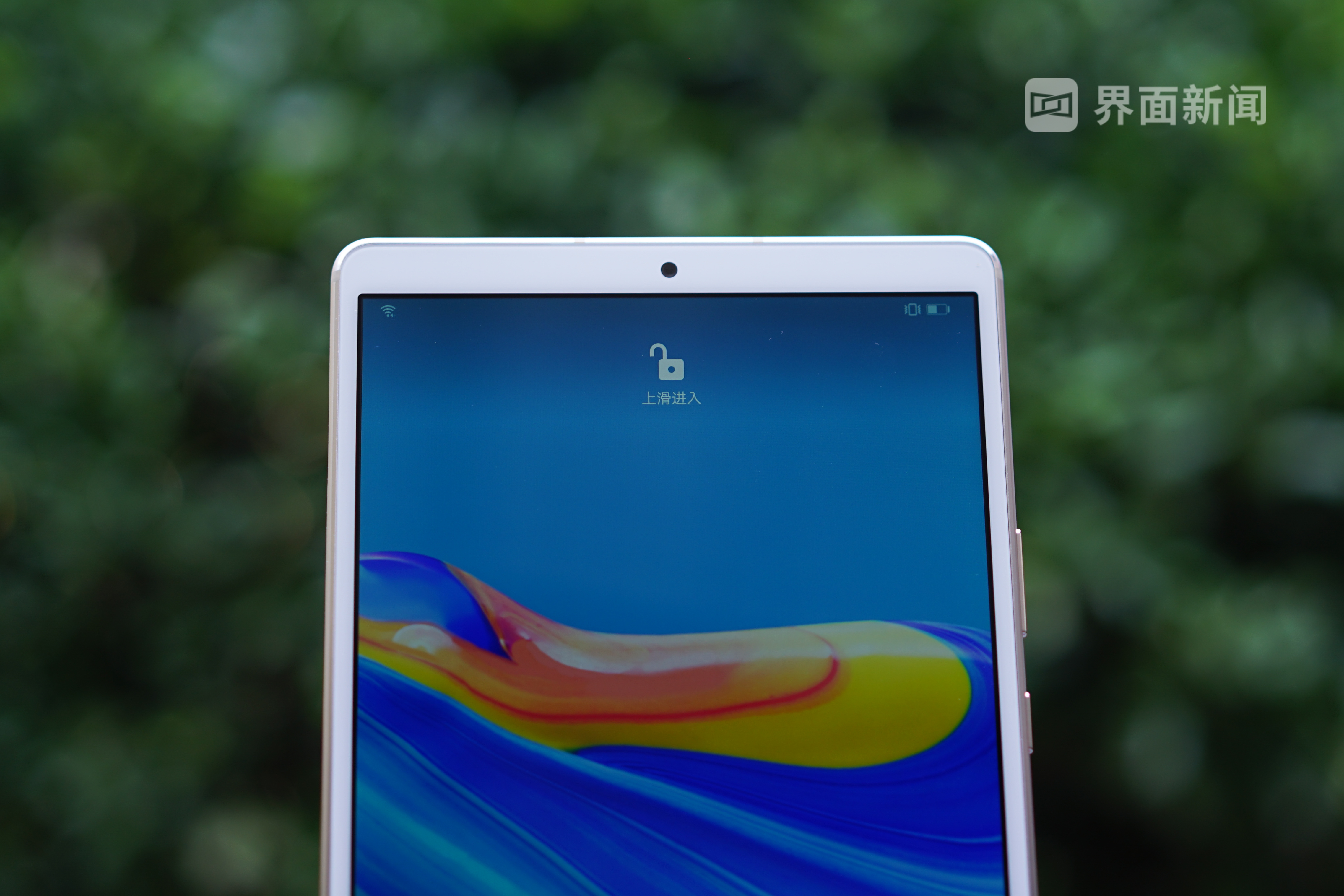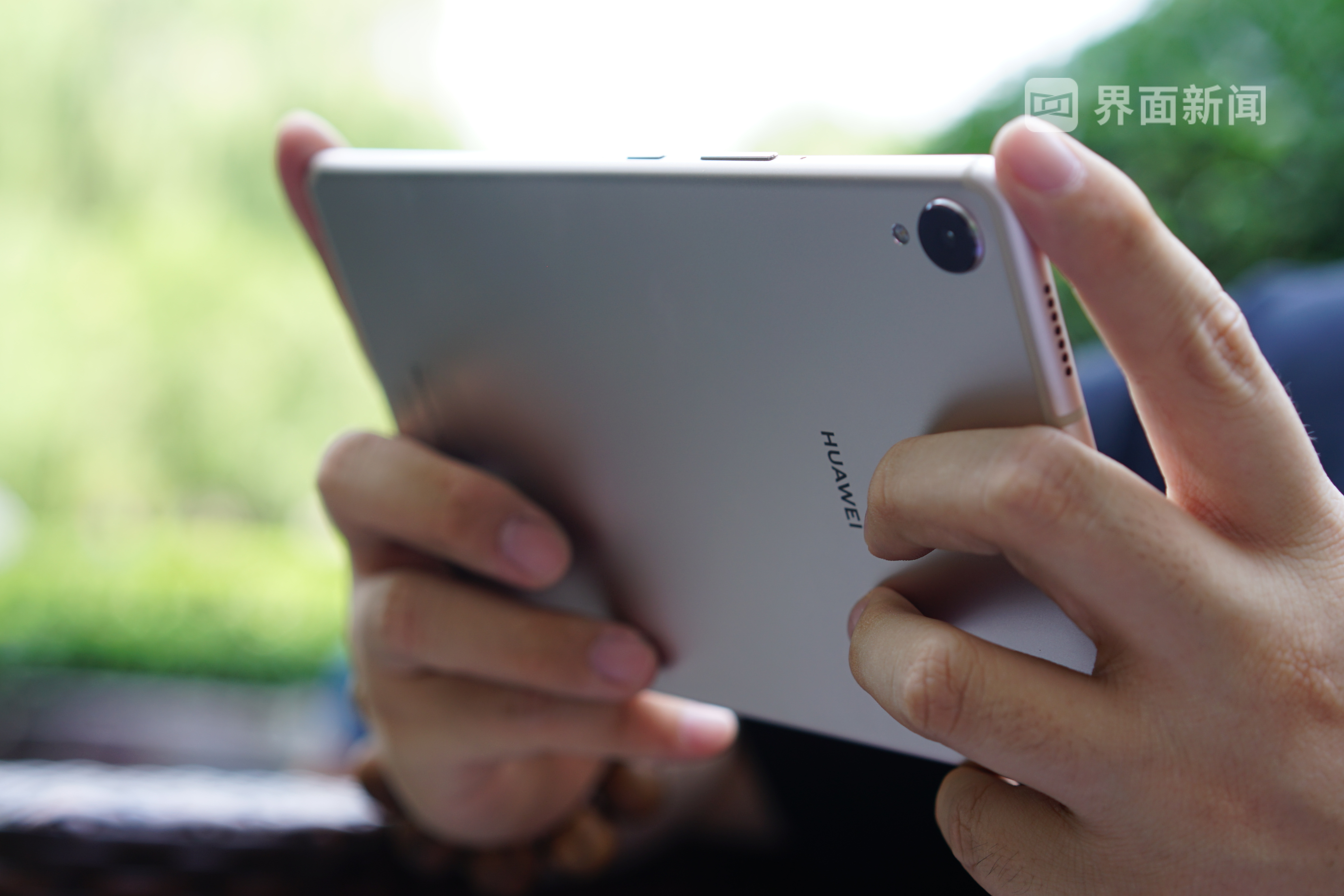 值得注意的是,8.4英寸华为平板M6在机身比例上沿袭了华为手机的修长设计,整个屏占比达到了83.5%。屏幕左右两侧收窄,而上下两侧则预留了一定空间,防止误触,因此8.4英寸的尺寸单手也能够轻松握持。