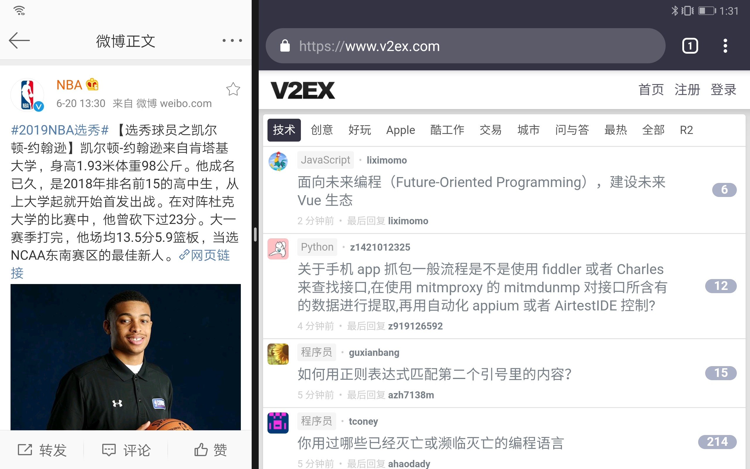 分屏的意义远不止一边看视频一边刷微博。它所体现的是一台设备多任务处理的能力,“电脑”之所以是“电脑”,正是在于其能够同时处理很多程序。对于学生来说,它能够一边打开word另一边打开记事本——这是我真实在户外看见的使用方法。