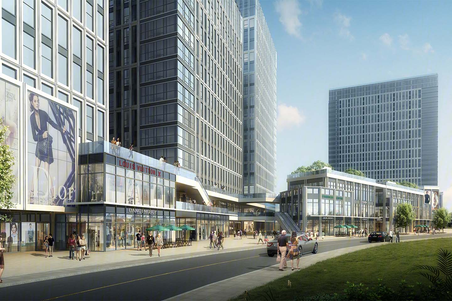 华家池·印公馆外立面以金属与玻璃相搭配,呈现出站立的“镜面泳池”现代又都会的效果,显得大气且尊贵。