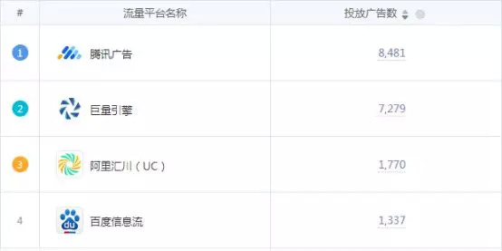 消金界发现,2019年第二季度,金融类广告投放,排名前四的平台为:腾讯广告、巨量引擎、阿里汇川(UC)、百度信息流。