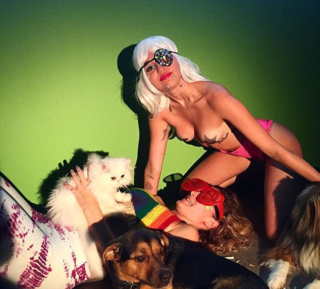 正当前未婚夫利亚姆·海莫斯沃斯 (liam hemsworth)这几天因和《独立日2:复活》女星麦卡·梦露(Maika Monroe)的绯闻占据各大头条时,麦莉也不忘为自己吸引些注意力。本周四22岁的她在Instagram上Po了一些几乎全裸的照片,照片中她戴着粉色帽子和白色假发,除了贴了一对星型胸贴之外啥都没穿。