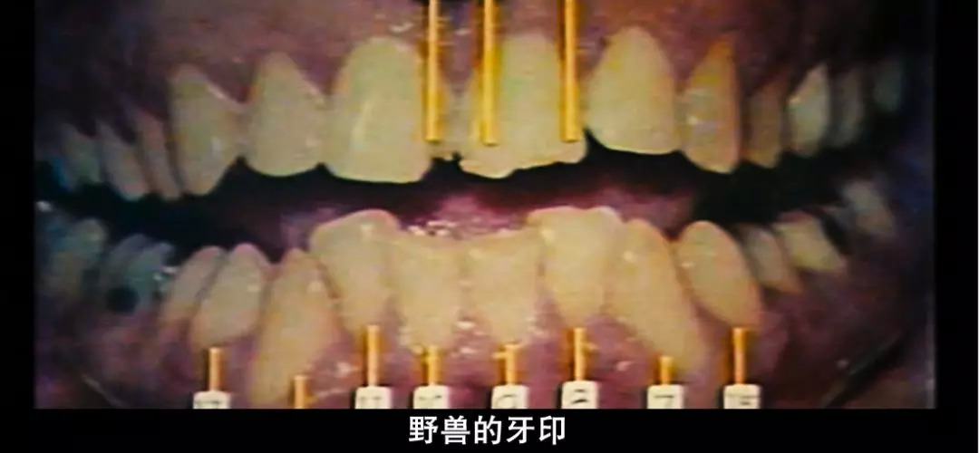 留在尸体上的两排大且深的牙印。