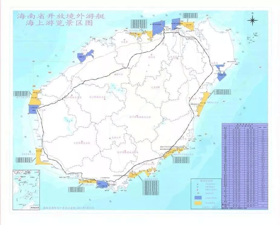 海南省开放境外游艇海上游览景区图