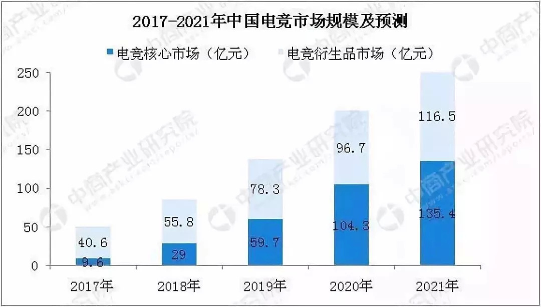 到2020年,中国电竞市场规模将超200亿元,其中核心市场规模将达到135.4亿元,衍生品市场规模将达到116.5亿元。