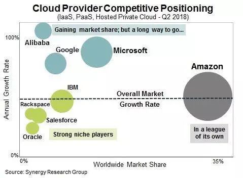 2018 年,云计算市场调研机构 Synergy Research 首席分析师兼董事总经理 John Dinsdale 在接受 TechCrunch 的采访时提到:“在云基础设施服务 (IaaS、PaaS、托管的私有云服务) 中,甲骨文市场份额只有 2%。”在这个注定是规模商业的新领域,甲骨文连前十都排不进不去,Dinsdale 还强调“它(甲骨文)的市场份额一直在稳步下滑。”