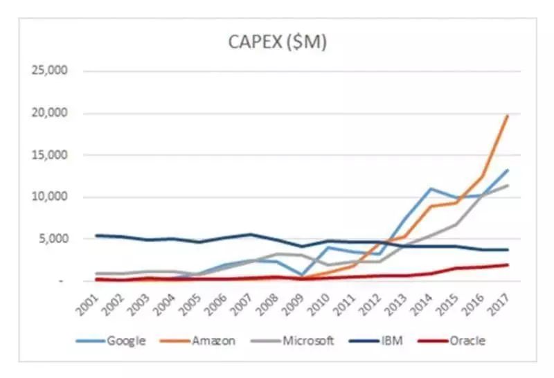 埃里森的吐槽在早期不无道理,云计算是一个需要巨资投入的基础性产业,以至于亚马逊很长时间都不愿对外界透露在 AWS 上的投入和营收。