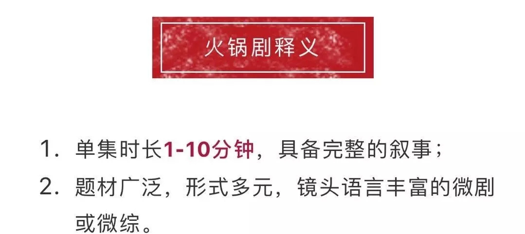 为了鼓励优质微剧、微综内容的创作,腾讯视频发布“火锅剧”的激励规则和合作方式。在腾讯发布的规则中,“火锅剧”释义为: