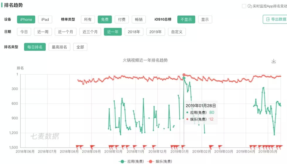 从七麦数据的统计来看,“yoo视频”从上线至今并未引起太大波澜,最好的成绩是在今年1月29日,即春节之前,iphone下载量达到娱乐榜单12名,应用榜单80名。