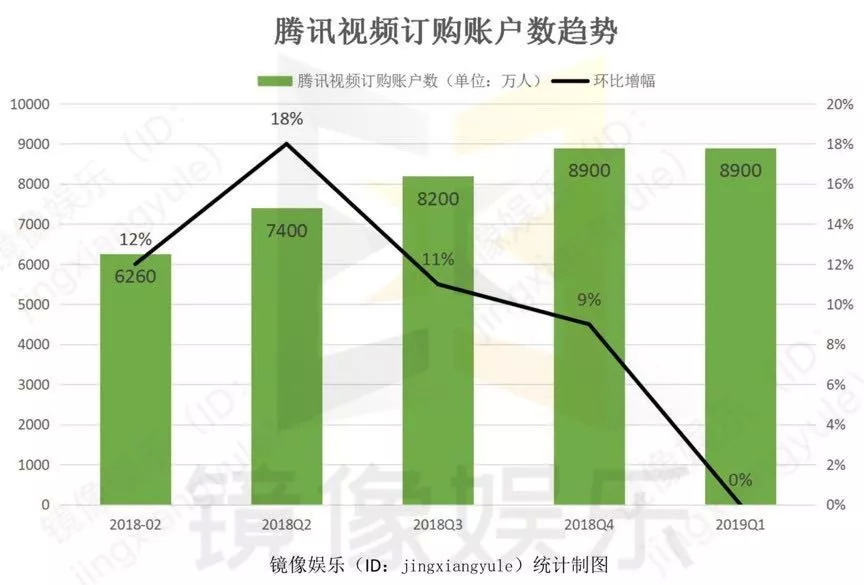 2019年Q1,腾讯视频订阅用户数为8900万,同比增长43%,环比增长基本为零,这与年初不少业内人士预估的订阅用户在Q1破亿相去甚远。