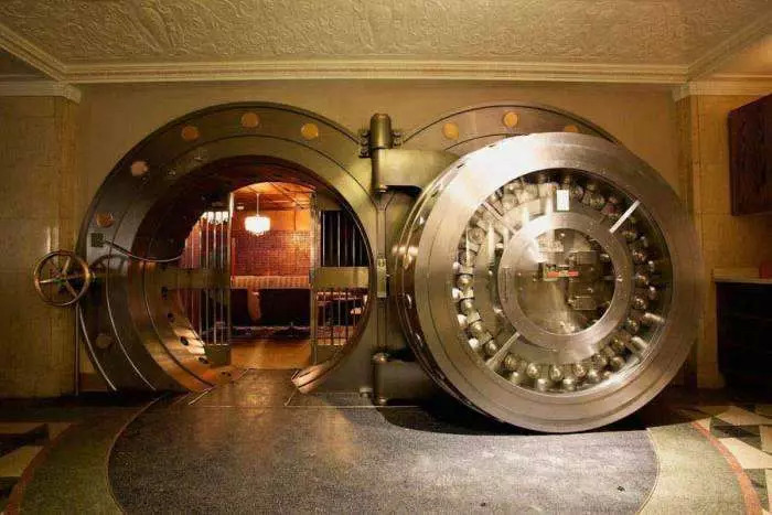 纽约联邦储备银行地下25米,是金库所在地。整个金库被花岗岩层包裹,为安全起见,其墙壁厚达数米。金库门框为一个重达140吨的钢筋混凝土构件,大门则是一个90吨重的钢质圆柱,圆柱中间为通往金库的狭窄通道。